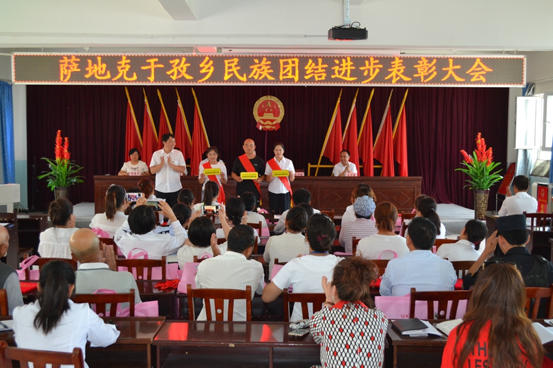 6月14日上午,萨地克于孜乡召开2018年度民族团结表彰大会暨民族团结安排部署会议,全乡乡村干部、学校、卫生院、派出所、群众代表等80余人参加了此次大会。